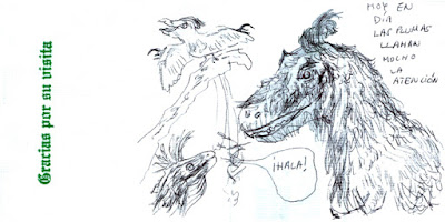- Por los dinosaurios emplumados. Son para mi un reto, la mayor sorpresa que me deparó este libro. No tenía ni idea de la variedad de fósiles de distintas especies, algunas muy lejanas entre si. Eso me rompió muchos esquemas, tuve que dejar de ver la aparición de las plumas como un signo definitivo de la transición hacia las aves, sino como una posibilidad más que dio pie a distintas radiaciones, entre ellas las aves. Hay tal cantidad u variedad de fósiles de formas emplumadas, que se puede hacer una buena recreación de la transición entre dinosaurios-como-aves y aves-como-dinosaurios. Tantas transiciones, me hicieron pensar que realmente no se puede señalar un punto de inflexión entre pájaros y dinosaurios, que esta continuidad impide separarlos, que realmente las aves son dinosairios. Hoy en día manejo un concepto distinto, para mi las aves son aves, y los dinosaurios son dinosaurios, a pesar de que las primeras muy probablemente provengan de los segundos. Digo muy probablemente porque todavía se debaten, científicamente, otras posibilidades. Por cierto, ya adelanto que la más que probable separación del arcaheopteryx del linaje de las aves poco influye en los puntos de vista de los partidarios y detractores -científicos- de lass dinoaves.